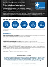 No information contained in this website should be taken as constituting an offer or invitation to subscribe or purchase to buy, sell or hold any securities of Starwood European Real Estate Finance Limited (the "Company") or any entity. The information contained herein is subject to updating, amendment and verification. It should not be relied upon by any persons for any purpose. Nothing on the website or in the materials therein constitutes or is intended to constitute financial or other advice and you should not act upon any information contained on the website or in the relevant materials without first consulting a financial or other professional adviser.